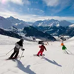 A Verbier városi hotel egyes szobáiban erkélyt és sötétítőket kínálnak.